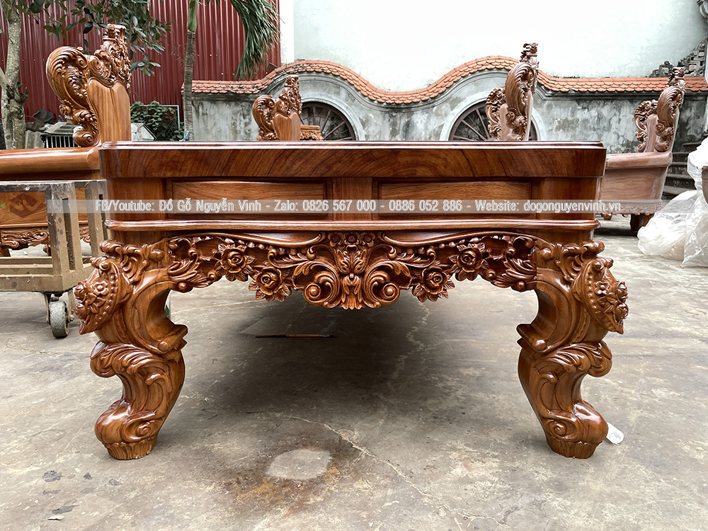 - Mô tả: Bộ hoàng gia tân cổ điển 10 món VIP gỗ gõ đỏ là sản phẩm đồ gỗ nội thất cao cấp, do xưởng sản xuất Nguyễn Vinh trực tiếp thi công, với đội ngũ nghệ nhân giàu kinh nghiệm, và chất liệu gỗ gõ đỏ quý báu, chạm khắc thủ công tinh tế.