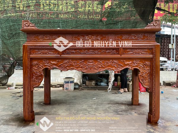 - Bàn thờ án gian đục nền sen vịt gỗ mít dài 175cm do các nghệ nhân lành nghề tại làng nghề truyền thống Hải Minh tại cơ sở xưởng Đồ gỗ Nguyễn Vinh( huyện Hải Hậu, tỉnh Nam Định ) sản xuất.
