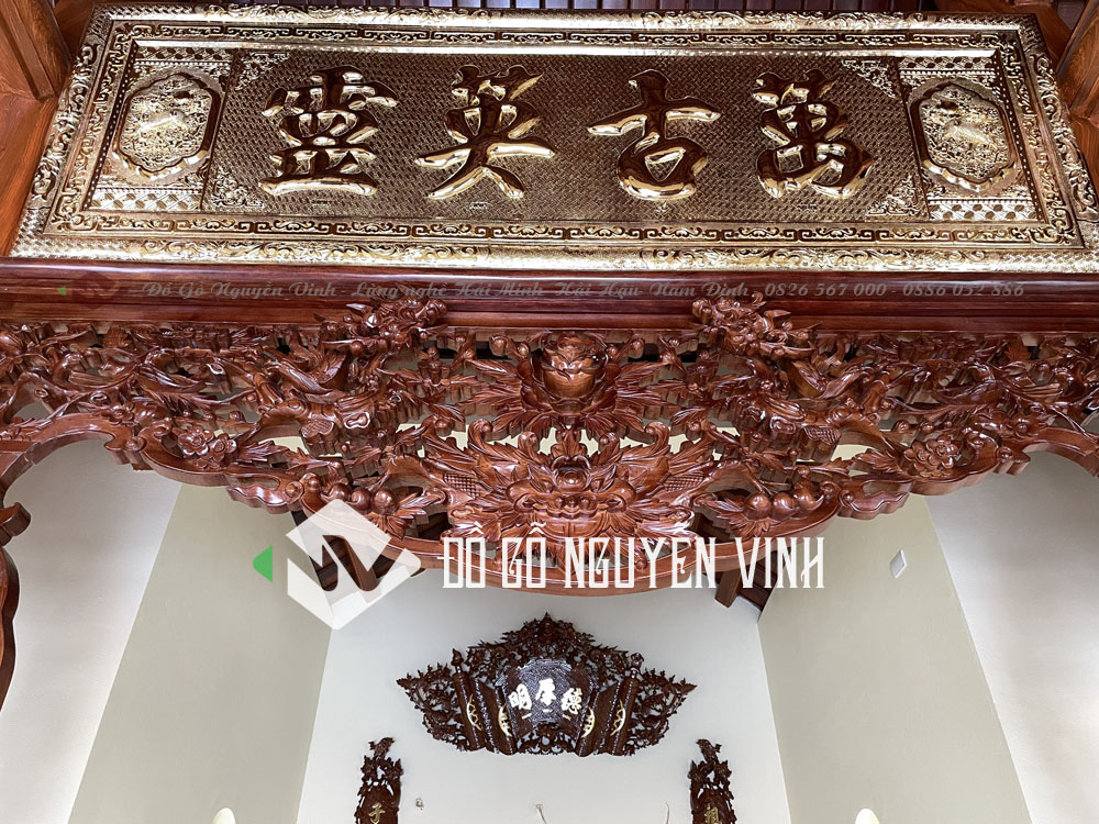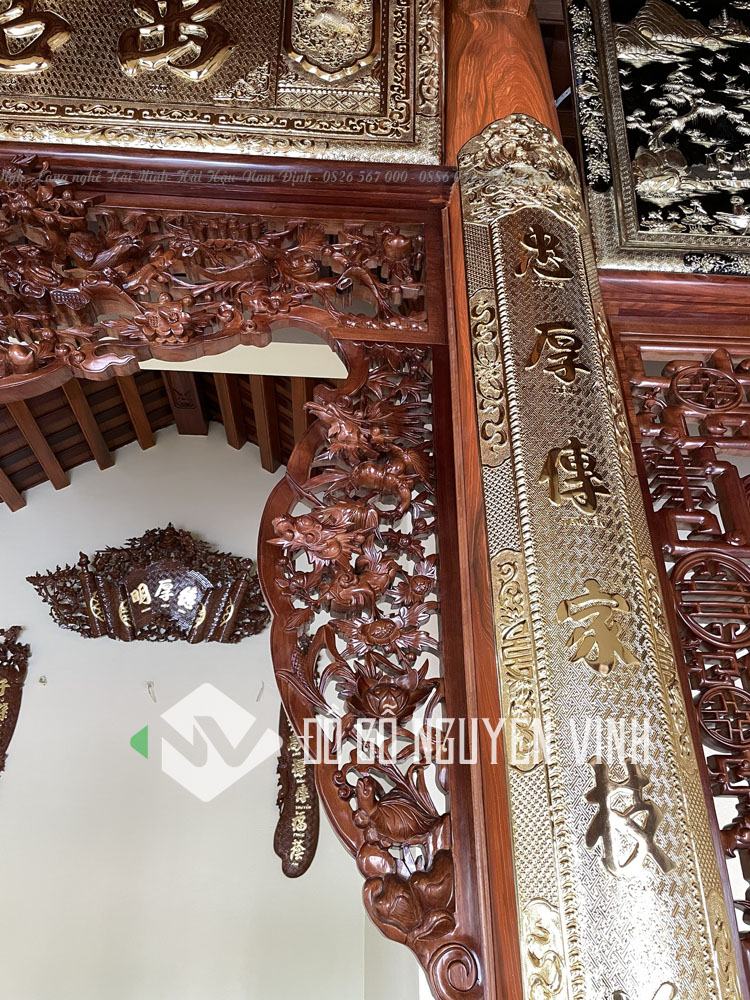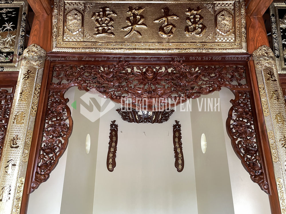 - Bộ cửa võng đục tứ linh hoá gỗ gụ loại dày do các nghệ nhân lành nghề tại làng nghề truyền thống Hải Minh tại cơ sở xưởng Đồ gỗ Nguyễn Vinh( huyện Hải Hậu, tỉnh Nam Định ) sản xuất.