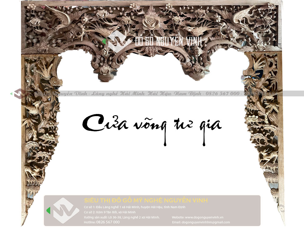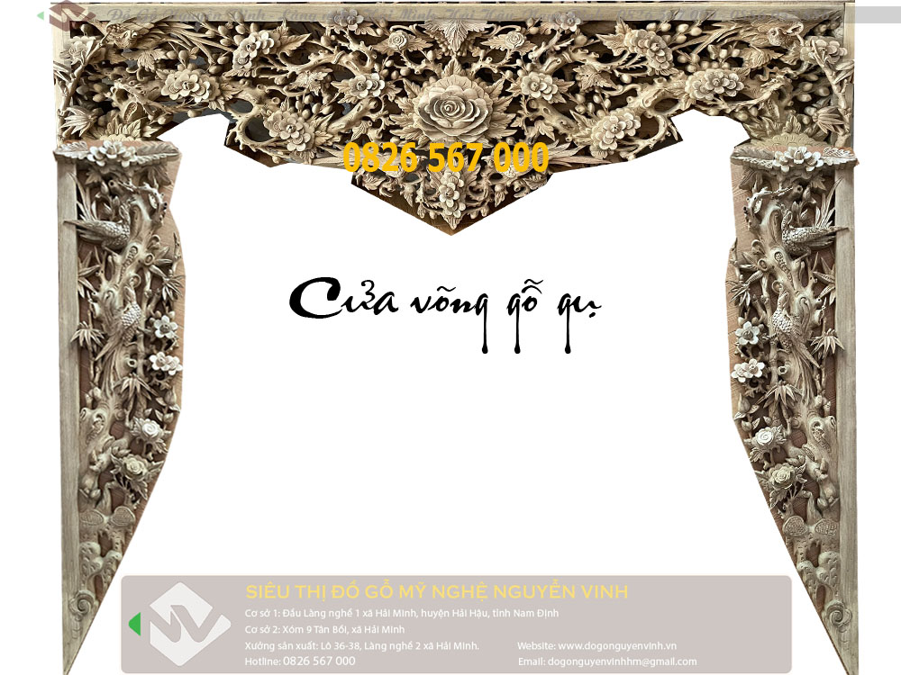 - Cửa võng đục chim hoa gỗ gụ hàng dày theo yêu cầu do các nghệ nhân lành nghề tại làng nghề truyền thống Hải Minh tại cơ sở xưởng Đồ gỗ Nguyễn Vinh( huyện Hải Hậu, tỉnh Nam Định ) sản xuất.