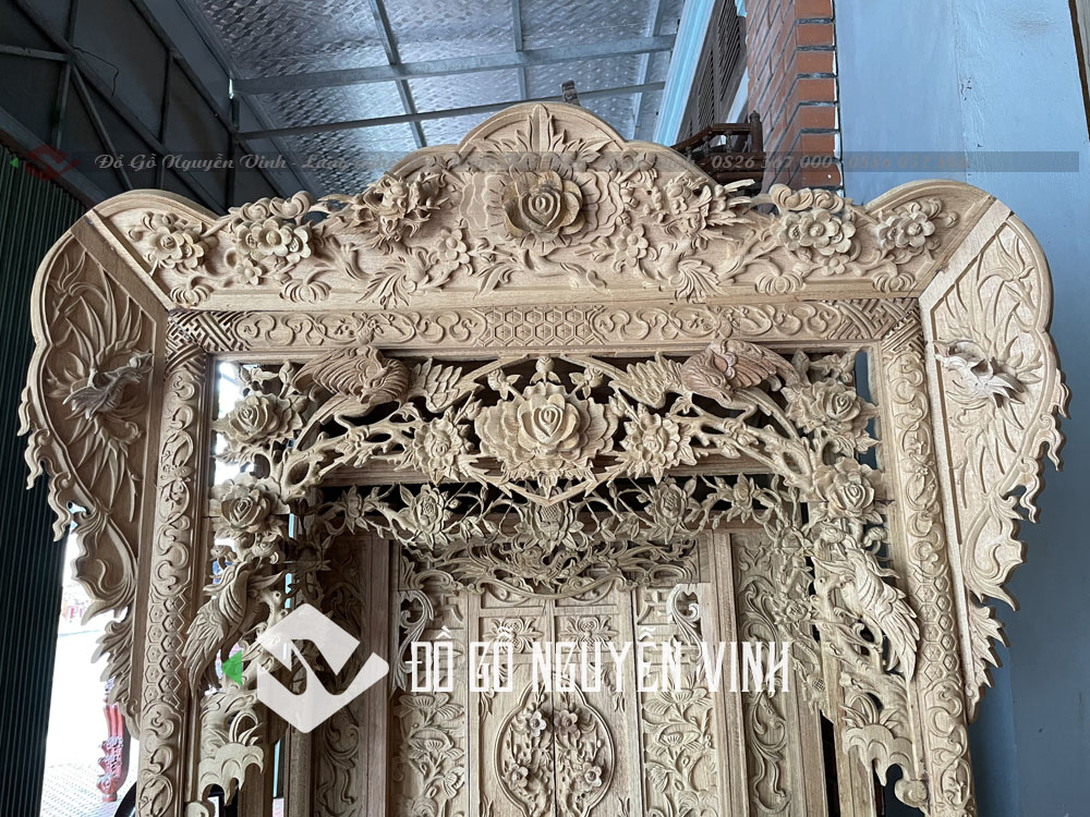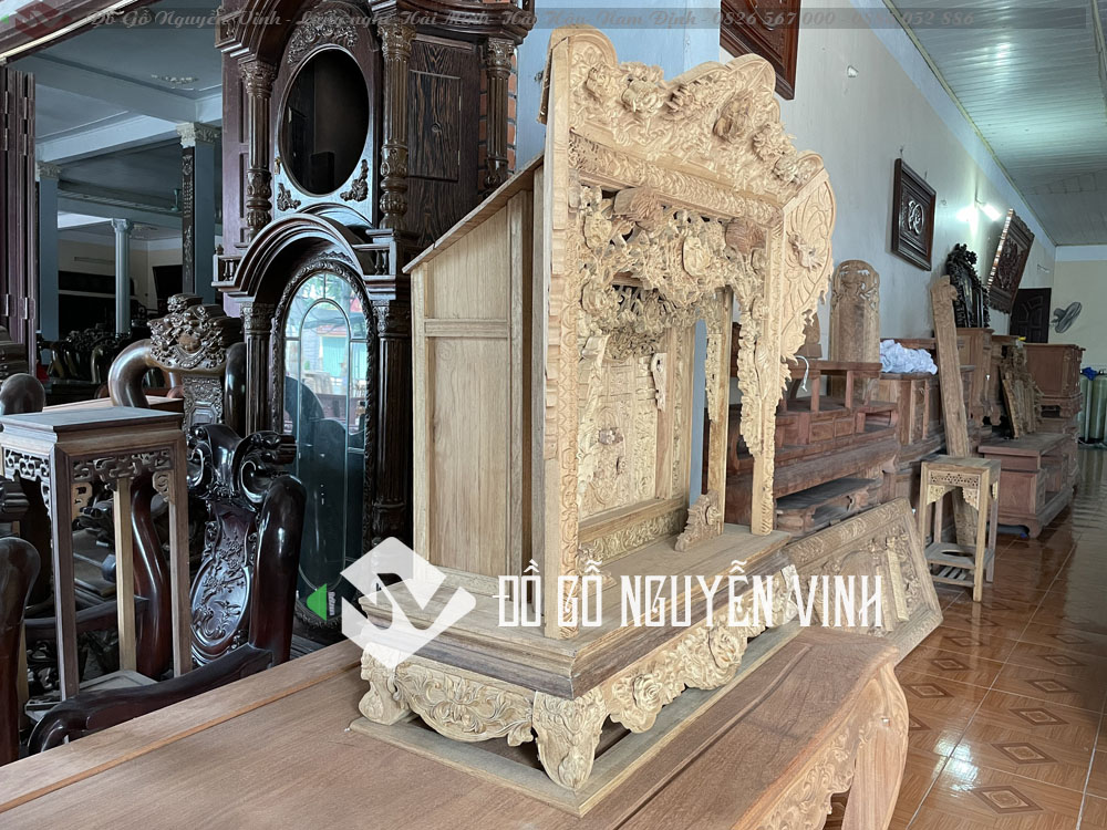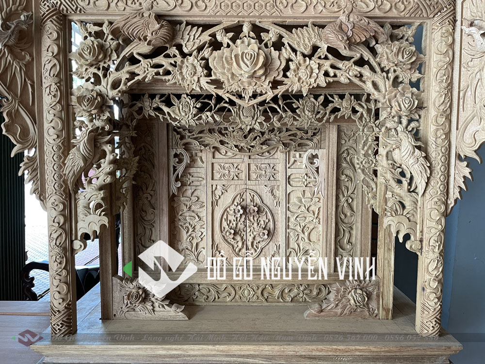 - Khám thờ gỗ gụ đục tứ linh hoá do các nghệ nhân lành nghề tại làng nghề truyền thống Hải Minh tại cơ sở xưởng Đồ gỗ Nguyễn Vinh( huyện Hải Hậu, tỉnh Nam Định ) sản xuất.