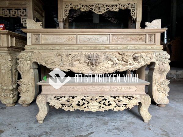 - Sập thờ- án gian thờ đục Tứ linh gỗ gụ cỡ đại do các nghệ nhân lành nghề tại làng nghề truyền thống Hải Minh tại cơ sở xưởng Đồ gỗ Nguyễn Vinh( huyện Hải Hậu, tỉnh Nam Định ) sản xuất.