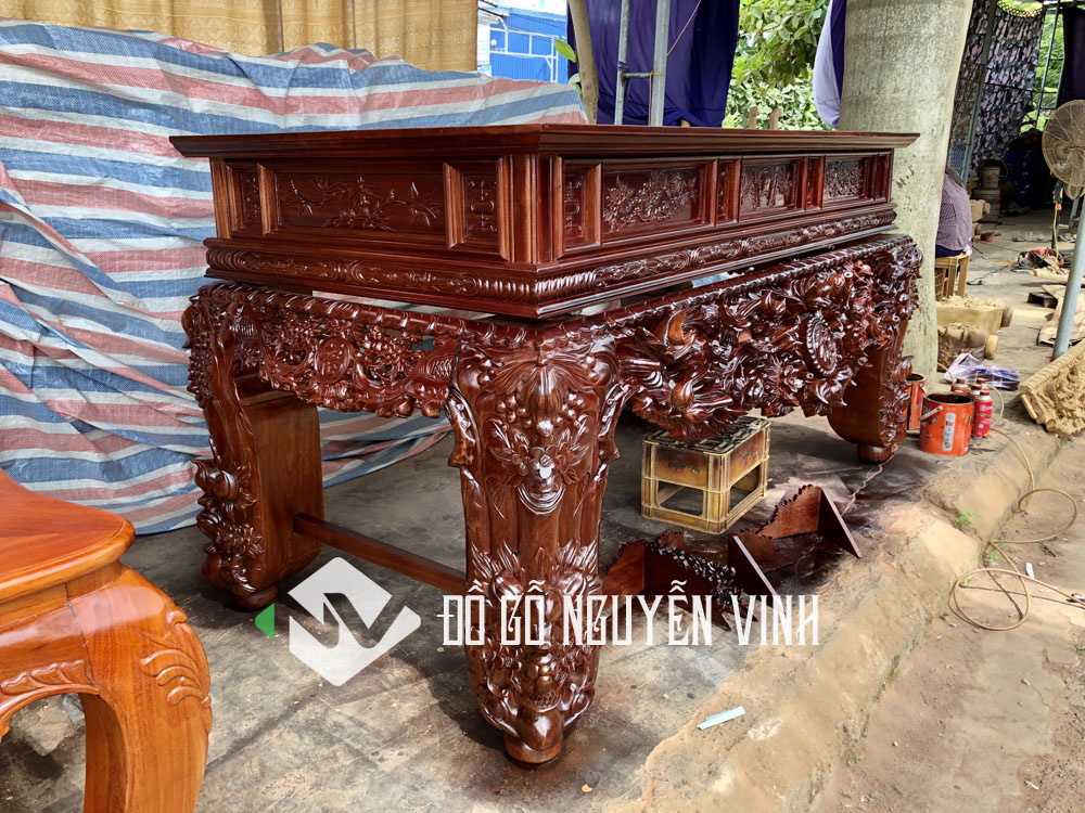 Sập thờ chạm mai điểu 2m17 gỗ gụ giá rẻ do các nghệ nhân lành nghề tại làng nghề truyền thống Hải Minh tại cơ sở xưởng Đồ gỗ Nguyễn Vinh ( huyện Hải Hậu, tỉnh Nam Định ) sản xuất.