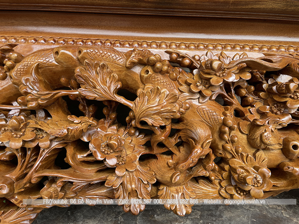 - Mô tả: Sập Thập điểu quần mai chân 30 gỗ gụ là sản phẩm đồ gỗ nội thất cao cấp, do xưởng sản xuất Nguyễn Vinh trực tiếp thi công, với đội ngũ nghệ nhân giàu kinh nghiệm, và chất liệu gỗ quý báu, chạm khắc thủ công tinh tế.